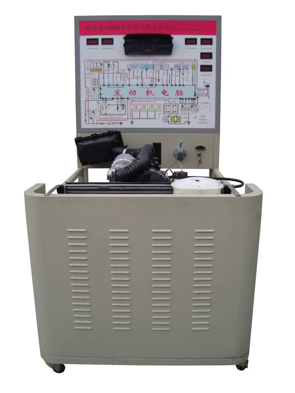 捷达SDI原厂电控柴油发动机总成、原车发动机控制电脑、电子油门加速机构、组合仪表、发动机起动运行所有相关的原车附件、故障模拟考核和排除系统、原车电路原理图板及检测端子、100AH大容量蓄电池、大容量不锈钢油箱、发动机加速机构、控制面板柜、可移动台架、台架电源总开关、原车故障检测通讯的诊断座、散热系统、台架操作说明书、实验指导书等附件。