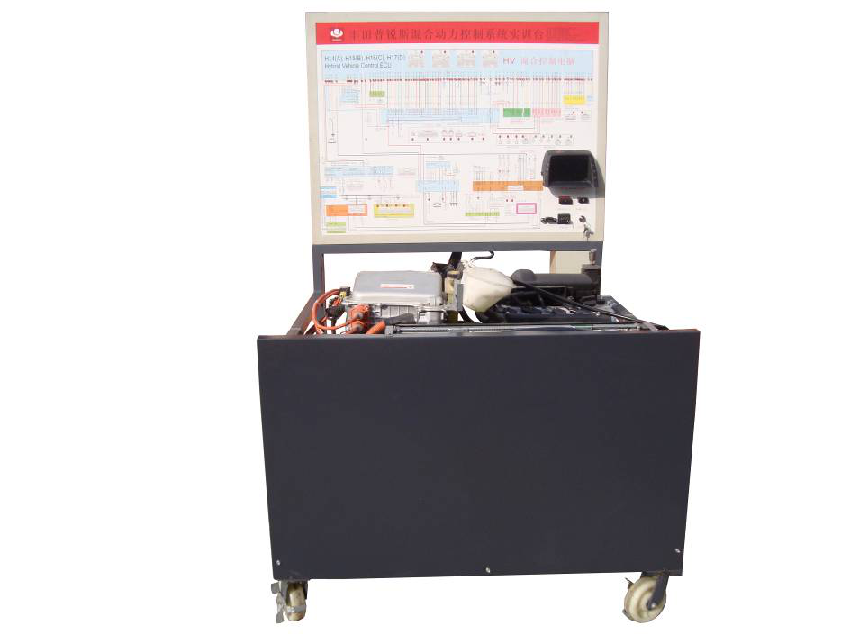 丰田普瑞斯1.5L油电混合动力系统总成(包含原车电控发动机、油电混合驱动桥、HV蓄电池等附件总成)、原车油电混合动力系统控制电脑、电子油门加速机构、组合仪表、油电混合动力起动运行所有相关的原车附件、故障模拟考核和排除系统、原车电路原理图板及检测端子、备用60AH大容量蓄电池、大容量不锈钢油箱、油电混合动力加速机构、控制面板柜、可移动台架、台架备用电源总开关、原车故障检测通讯的诊断座、散热系统、台架操作说明书、实验指导书等附件。
