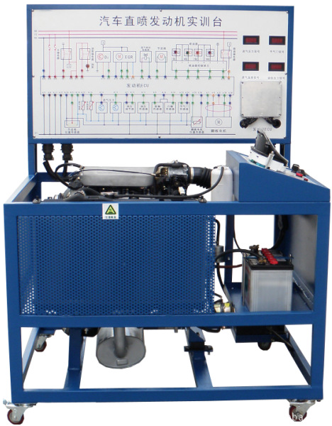 各传感器及执行器安装数字显示表、台架安装燃油压力表与真空表、带锁止万向的脚轮、两侧圆形钢管护手、台架高温及转动等部位加装防护装置。