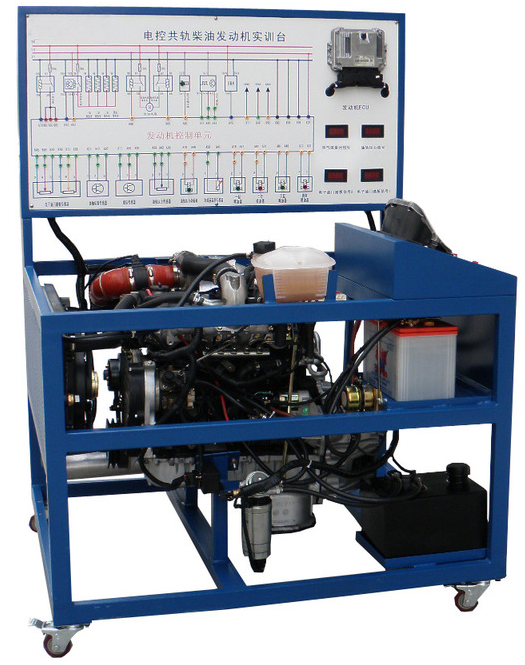 哈弗TC2.8L 原厂电控共轨柴油发动机总成、原车发动机控制电脑、电子油门加速机构、组合仪表、发动机起动运行所有相关的原车附件、故障模拟考核和排除系统、原车电路原理图板及检测端子、100AH大容量蓄电池、大容量不锈钢油箱、发动机加速机构、控制面板柜、可移动台架、台架电源总开关、原车故障检测通讯的诊断座、散热系统、台架操作说明书、实验指导书等附件。