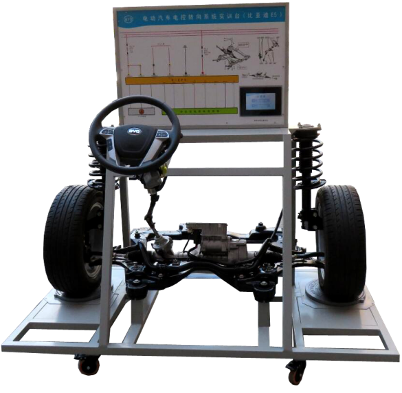 该设备应采用 比亚迪E5新能源轿车前桥总成为基础, 能全面展示了电控助力转向系统、 前桥悬架系统的组成结构和工作过程。 适用于中高等职业技术院校、 普通教育类学院和培训机构对电控助力转向系统的理论和维修实训的教学需要。