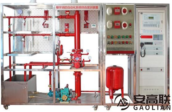 楼宇消防自动化系统综合实训装置即消防联动控制中心及喷淋灭火系统实训装置"依据[建筑消防设计规范]进行标准设计,该系统具有消防控制联动中心、消防广播电话中心、消防喷水灭火系统的典型结构,能够完成火灾探测,早期探测,火灾报警,现场灭火,等演示性实训项目和消防管理中心,同时还能清楚的展示喷淋灭火系统的典型设备构成和系统工作原理,通过该装置的操作学习,学生可以对楼宇中喷水灭火系统的结构有一个全面的了解,喷淋系统与联动动控制中心系统实现联网控制,探测器与联动中心联接实现手自动控制;操作管理中心的联接,同时与广播电话中心联网,完全实现现智能化大楼设计,掌握建筑物内部主要灭火设备的应用,熟悉楼宇中湿式报警阀、水流指示器、压力开关等灭火设备的结构和原理,了解消防控制中心的联动操作与设置,广播电话中心的控制与操作设置,了解现代建筑消防联动设备系统原理和调试,熟悉消防的控制原理和工作过程。它适用于学习《建筑灭火系统》、《楼宇给排水系统》、《楼宇消防控制系统》等专业课的中职业院校的实训教学。