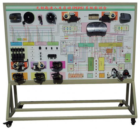 本台架用于纯电动汽车PEPS(无钥匙进入及启动)的结构原理及工作过程的教学,教学中通过本台架的使用可以学员了解PEPS系统架构及控制过程以及纯电动汽车与传统燃油汽车PEPS系统的区别,同时由于本台架是基于量产实车研制,所以学员可通过本台架的使用直接完成相应车型PEPS系统常见故障的检测及维修。