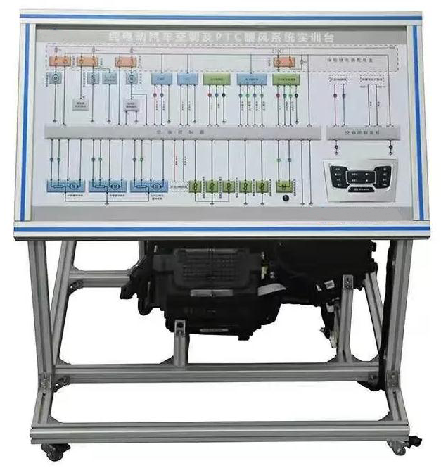 Ø 本实训台完整展示了电动汽车热泵空调的所有零部件,结构原理及控制原理与实物基本一致,可用于热泵空调原理的教学。